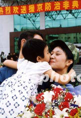 五日上午,中國人民解放軍第一軍醫大學六十二名醫護人員進京支援首都決戰“非典”,他們的抵達標志著全軍為支援北京緊急抽調的一千二百名醫護人員全部到位。中新社記者:張永勝