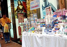 香港“非典”疫情穩中放緩,市民不敢松懈,售賣預防病毒傳染的用品繼續受落。洪少葵 攝