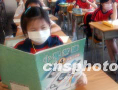 隨著香港“SARS”疫情的逐漸穩定,香港數百所小學的高年級學生五月十二日開始復課。在灣仔學校復課的第一天,老師向學生提問有關如何防預“SARS”的基本知識。中新社記者 錢興強 攝