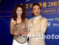 歌星陳慧琳6月2日在香港出席“職業英語運動2003”記者會。中新社記者 鄧慶樂
