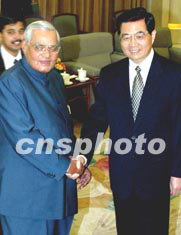 胡錦濤對瓦杰帕伊來華訪問表示歡迎。他說,昨天兩國總理進行了富有成果的會談,達成了廣泛共識,雙方簽署了《中印關系原則與全面合作宣言》等一系列合作文件,為兩國關系的進一步發展奠定了法律基礎。