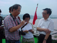 記者在三峽大壩工地進行實地采訪和拍攝,并就三峽工程建設、并網發電、內河航運及“大壩裂縫”等問題采訪了三峽總公司總經理陸佑楣、副總經理郭濤和曹廣晶。