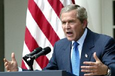在準(zhǔn)備前往得州牧場(chǎng)度假之前,布什今天在白宮單獨(dú)舉行了記者會(huì)。這是布什上任以來第八次對(duì)記者“唱獨(dú)角戲”,比克林頓頭四年任期內(nèi)的三十三次和老布什的六十一次要少得多。