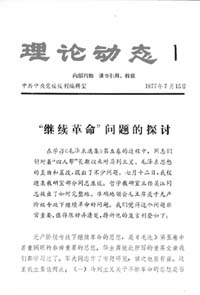 《“繼續革命”問題的探討》一文,近4500字。文章講了兩個問題:(一)馬列主義關于不斷革命的思想是否僅限于由民主革命不間斷地轉變為社會主義革命的思想,而沒有包括社會主義條件下的不斷革命思想?(二)無產階級專政下繼續革命的對象、任務是什么。文章重點是講后面一點。