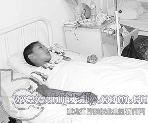王磊今年14歲,齊齊哈爾市28中學(xué)學(xué)生,開學(xué)上初中二年級,他和父親王宇亮住在一個病房里,父子二人病情都較重,雖然現(xiàn)在二人的病情都已經(jīng)開始好轉(zhuǎn),但離治愈出院還有一段時期。王磊告訴記者,當(dāng)天12時許,他爸爸把土卸下來之后,直接就鋪在院子過道上,由于有點濕,還不很平整,爸爸卸完土后,王磊就用腳平整,并墊了兩塊木板。因為那些土中有很多細(xì)砂子,踩上去很舒服,他就把鞋脫了,又玩了一會兒,12時30分左右,因為著急去補英語課,他沒有洗腳直接穿上鞋就去上課了。上課過程中,他就覺得腳火燒一樣地疼,15時許,他回到家把鞋脫了,發(fā)現(xiàn)腳已經(jīng)全紅了,第二天早晨,他腳上就起了大的水泡,又疼又癢,然后住進(jìn)203醫(yī)院。據(jù)王磊的醫(yī)生介紹,王磊的情況要重于其他孩子,可能需要手術(shù)治療。