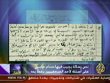 圖:半島臺播出薩達姆親筆信 呼吁發動圣戰