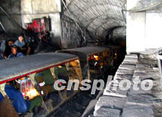 山西大同杏兒溝煤礦八·一一礦難的救援隊員,八月十四日下午攜帶防爆數碼攝像機、照像機,再次進入特大瓦斯爆炸現場,進行調查取證。作者:王煥偉