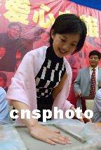 “太陽星城”愛心之旅大型公益活動二十八日從北京人民大會堂正式啟程,電視節目主持人許戈輝在啟程儀式上按下象征愛心與弱者牽手的手印。中新社 張煒 攝