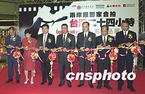 『兩岸攝影家合拍臺(tái)灣二十四小時(shí)攝影作品展』十一日在澳門觀光塔舉行,澳門特區(qū)行政長(zhǎng)官何厚鏵、中國(guó)海外交流協(xié)會(huì)副會(huì)長(zhǎng)趙陽(yáng)、中央駐澳聯(lián)絡(luò)辦副主任王金翔等出席開(kāi)幕式并為展覽剪彩。中新社記者:李剛