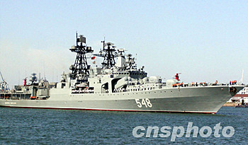 9月20日,俄羅斯海軍“潘捷列耶夫海軍上將”號大型反潛艦,在太平洋艦隊副司令科涅夫·亞歷山大·瓦西里耶維奇中將率領下,抵達青島港。鄒山 攝