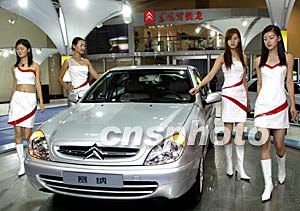 北京國際汽車零部件及相關產品展覽會和商用車展覽會九月二十五日在北京開幕,300多家廠商參加此次展覽,東風雪鐵龍賽納轎車在美女陪伴下登場。中新社記者:趙振清