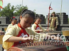 八名少年兒童在甕城城墻上為參加儀式的海內外來賓,演奏了悠揚悅耳的古箏樂曲。作者:李周芳