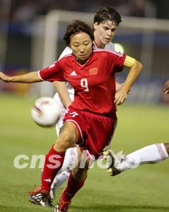 過早的失球并沒有讓中國隊(duì)自亂陣腳,中國隊(duì)依靠整體配合向?qū)Ψ疥嚨匕l(fā)起猛攻,創(chuàng)造了多次得分機(jī)會(huì)。第八分鐘,中國隊(duì)在對(duì)方禁區(qū)右前方獲得一次任意球機(jī)會(huì),孫雯主罰,以一記漂亮的“香蕉球”越過人墻,球打在橫梁上彈出;十二分鐘,白潔在對(duì)方小禁區(qū)前沿頭球攻門偏出;十六分鐘,孫雯在對(duì)方禁區(qū)內(nèi)得球,連續(xù)晃動(dòng)后一腳打門,球貼著球門立柱出了底線;三十六分鐘,孫雯在非常困難的情況下將球傳給插入禁區(qū)的畢妍,后者倉促起腳,錯(cuò)失了一次破門的絕佳機(jī)會(huì)。