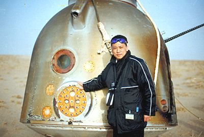 “神舟”五號飛船系統總指揮袁家軍與返回艙
