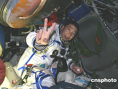 十月十六日晨六時,乘坐“神舟”五號飛船在太空遨游二十一小時的中國航天員楊利偉,披著巡天萬里的征塵,準(zhǔn)備從天外歸來。