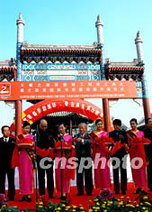 投資六千七百多萬(wàn)人民幣擴(kuò)建、修葺一新的山東臨沂市中國(guó)“書(shū)圣”王羲之故居,十七日正式對(duì)外開(kāi)放。山東省副省長(zhǎng)蔡秋芳(右一)、原中央軍委副主席、國(guó)防部長(zhǎng)遲浩田(右二)等為王羲之故居整修工程竣工典禮剪裁。中新社記者:王麗南