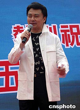 香港著名藝人劉志榮,19日為慶祝神舟五號成功載人上太空的大巡游中擔任司儀。作者:譚達明