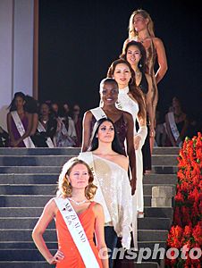第四屆中國海南島歡樂節開幕式暨世界小姐歡迎儀式二十二日在海口美視五月花音樂廣場舉行。110位世界佳麗為開幕式助興。中新社記者:關向東