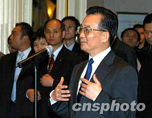 中新社紐約十二月七日電(記者 陳建 趙海燕)中國(guó)總理溫家寶于美東時(shí)間七日下午抵達(dá)紐約,開(kāi)始訪美之行。僅三小時(shí)之后,他就站在數(shù)百名華人面前,充滿(mǎn)感情地吟誦起泰戈?duì)柕脑?shī)句:無(wú)論你走得多么遠(yuǎn),你的心總和我連在一起;無(wú)論黃昏時(shí)樹(shù)的影子有多長(zhǎng),它總是和樹(shù)根連在一起。“這正是華僑華人、留學(xué)生和祖國(guó)的關(guān)系。”此言一出,掌聲四起。