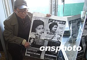 來自四川的劉曉慶的老鄉在法庭外支持劉曉慶。中新社記者:盛佳鵬