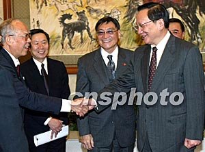 唐家璇在釣魚(yú)臺(tái)國(guó)賓館會(huì)見(jiàn)香港前高級(jí)公務(wù)員協(xié)會(huì)代表團(tuán)。他在會(huì)見(jiàn)前回答香港記者有關(guān)香港政制發(fā)展問(wèn)題時(shí)作以上表示。