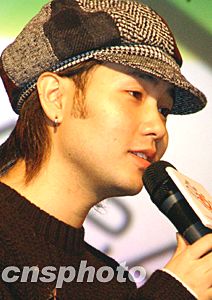 香港歌手葉文輝十二月二十八日在香港舉行的“亞洲游戲展2003”上,為參觀者及歌迷演唱。作者:錢興強