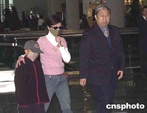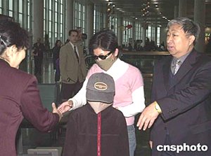 中新社海口一月十九日電(記者王辛莉)涉嫌在瓊從事間諜活動的臺灣人宋孝濂的妻子曾靖媛和兒子宋睿庭,今天下午搭乘澳門至海口飛機,于傍晚六點零五分抵達海口美蘭機場,希望能探視正在此間拘押的嫌犯。晚六點五十分,宋孝濂妻兒緩緩步出機場,其妻曾靖媛戴著墨鏡,九歲的兒子宋睿庭戴著大口罩和帽子。臺灣媒體TVBS記者隨機抵達海口。