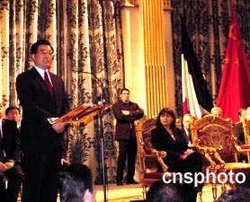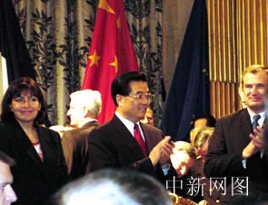 巴黎市政府二十八日上午舉行隆重儀式,歡迎中國國家主席胡錦濤訪法。巴黎市官員、議員、各國駐法使節和旅法華僑華人參加了歡迎儀式。蔚中攝