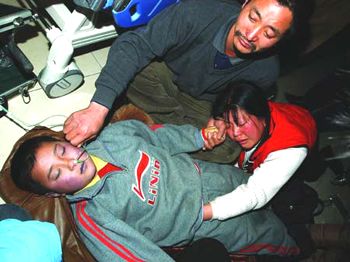 昨晚23時(shí)10分,一名已在密云縣醫(yī)院里昏迷了3個(gè)多小時(shí)的男孩開始接受急救。他的父母早已經(jīng)心急如焚。 新京報(bào)圖片