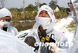中外十四名記者,十二日深入中國內地首發禽流感疫點--隆安縣丁當電灌站采訪。中新社記者:宋吉河