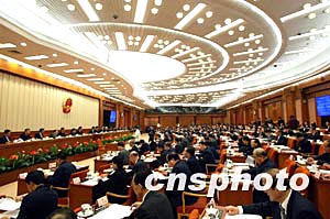 十屆全國人大常委會第七次會議二月二十九日在北京閉幕,會議表決通過了十屆人大二次會議議程草案、主席團和秘書長名單草案等。中新社記者:鄭萍萍