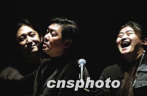三月十八日下午,劉歡在首都體育館進行其首次個人演唱會的彩排,十九日晚,演唱會將如期舉行。著名指揮余隆將指揮中國愛樂樂團為劉歡伴奏。三寶、余隆、劉歡(從左倒右)在彩排現場一臉輕松。作者:高遠