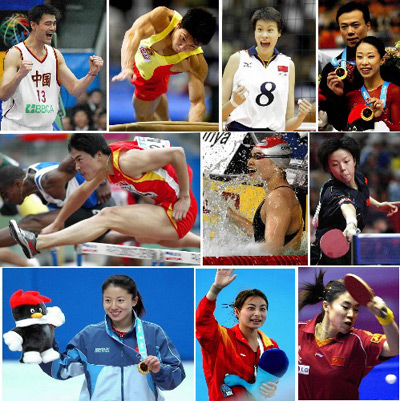 當選的運動員是(上排左起):姚明、李小鵬、趙蕊蕊、申雪(女)/趙宏博,(中排左起)劉翔、羅雪娟、張怡寧,(下排左起)楊揚、郭晶晶、王楠。圖據人民網