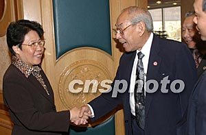 中新社北京四月二日電(記者 邢利宇)中國國務院僑務辦公室主任陳玉杰今天下午在此間會見了以梅惠照為團長的美國安良工商會訪問團一行十余人。