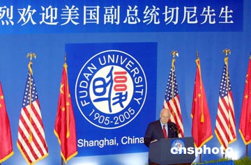 中新網4月15日電 美國副總統切尼今天在上海復旦大學發表演講時重申,在臺灣問題上,美國一貫堅持基于“三個聯合公報”的“一個中國”原則。