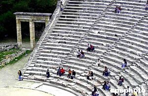 神話、史詩、戲劇是古希臘的重要文明,伯羅奔尼撒半島東南方的埃庇達洛斯劇場為公元前四世紀所建,呈圓扇面形,共有55層座位,每層兩階梯,可容納14000人。其音效奇佳,在圓心處低語或掉下一塊銅幣,坐在最后一排也能聽得真切。作者:田地