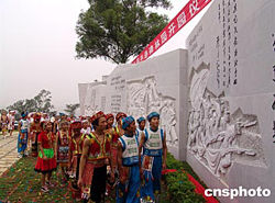 八月二十一日,鄧小平發動領導百色起義的地方廣西百色市舉行活動紀念鄧小平百年誕辰,鄧小平手跡碑林園當日落成揭幕。圖為少數民族同胞觀看碑林,紀念鄧小平百年誕辰。