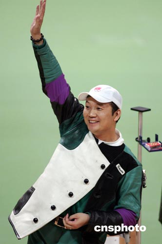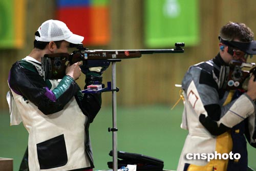 當地時間八月二十二日下午,在雅典奧運會男子三乘四十射擊比賽中,中國的賈占波以一千二百六十四點五環的成績獲得金牌。中新社記者:毛建軍