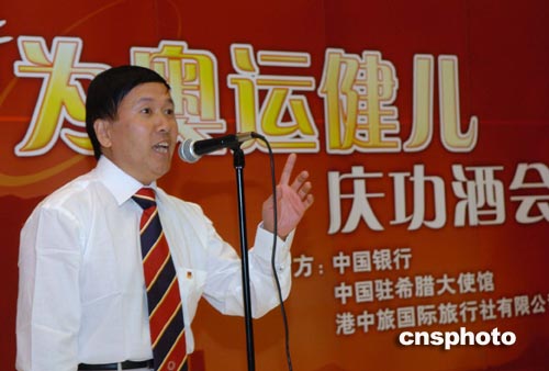 中國駐希臘大使唐振琪、中國奧委會(huì)副主席何慧嫻、中國銀行副行長(zhǎng)華慶山、希臘經(jīng)濟(jì)財(cái)政部副部長(zhǎng)彼得·杜加斯、希臘金融界人士,中國奧運(yùn)代表團(tuán)部分教練員和運(yùn)動(dòng)員包括舉重隊(duì)、女子壘球隊(duì)、羽毛球隊(duì)等,以及中國銀行長(zhǎng)城卡奧運(yùn)助威團(tuán)共約一百五十人參加了酒會(huì)。