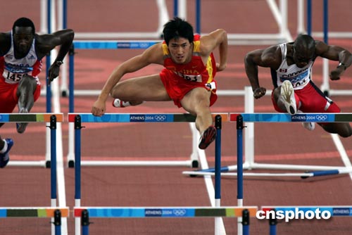 當地時間8月26日晚,雅典奧運會田徑比賽繼續進行,奪標大熱門、中國的劉翔在110米欄半決賽中以13秒18的成績輕松晉級決賽。在參加決賽的八名選手中,劉翔的預賽成績名列第四,將在第六道參加決賽。中新社記者:任晨鳴