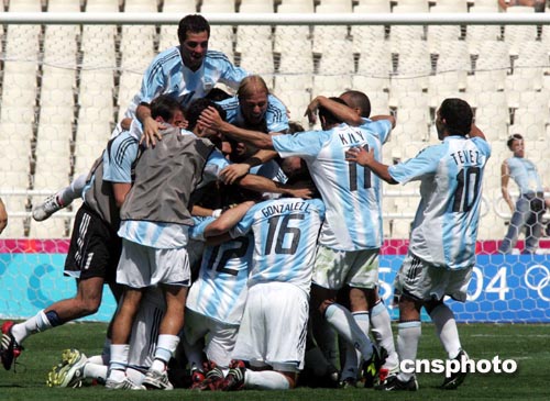 當地時間8月28日中午,雅典奧運會男子足球在主體育場舉行。實力強大的世界勁旅阿根廷隊以1比0擊敗同是南美的巴拉圭隊,獲得冠軍。在世界杯、南美杯等重大賽事上屢屢遭受敗績的阿根廷隊,終于獲得了一項被職業足球界視為“雞肋”的冠軍。阿根廷隊10號卡洛斯在上半場攻入全場唯一的進球,之后雙方都有多次機會改寫比分,但都無功而返;巴拉圭隊有兩名球員被紅牌罰下;獲勝后的阿根廷球隊在藍天白云下,在奧運會主火炬的映照下狂歡慶祝。中新社記者:任晨鳴