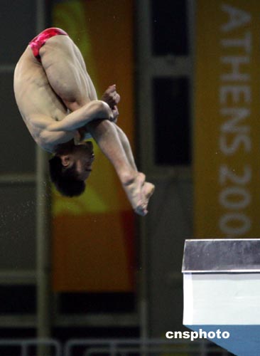 當?shù)貢r間8月28日晚,在雅典奧運會跳水最后一項比賽--10米跳臺決賽中,中國名將胡佳奪得冠軍。中新社記者:任晨鳴