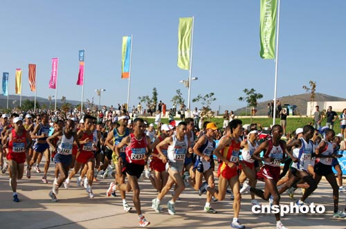 在奧林匹克回到故鄉的今次雅典奧運會,馬拉松比賽的路線與當年菲迪皮德斯和西拜羅斯所跑過的路線一致,起點位于馬拉松,終點設在帕納辛奈科體育場,路線全長四十二點一九五公里。