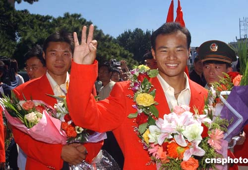 圖:奧運冠軍孟關良、楊文軍載譽回國