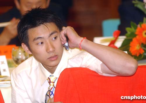九月二日晚,中共中央辦公廳、國務院辦公廳在北京人民大會堂宴會廳舉行招待會,歡迎載譽歸來的第28屆奧運會中國體育代表團。圖為體操奧運冠軍滕海斌在招待會上。中新社記者:武仲林