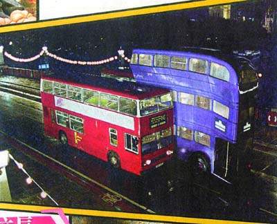 哈利在片中會登上一部外表跟普通倫敦巴士無異,但其實由魔法控制走動的“騎士巴士”。怪巴士用上一輛已“退休”的普通巴士加建一層而成,拍攝時以時速30公里駕駛,而路面上其他車輛則以時速8公里行走,再加上路上的特技人受過特別的走路訓練(較正常步速慢),讓巴士在馬路上看來飛馳得特別快。