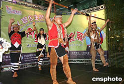 為期三天的阿里山鄒族美食展9月10日在臺北開展。在開展儀式上,鄒族的男女青年表演傳統舞蹈。作者:黃少華