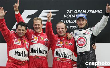 中新網(wǎng)9月13日電 在意大利蒙扎賽道,法拉利再次包攬F(tuán)1大獎(jiǎng)賽意大利站的前兩名,已經(jīng)確保本賽季奪冠的舒馬赫甘居第二,配合巴里切羅登上了冠軍寶座。