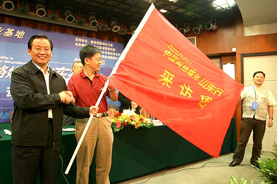 山東官員向“中國網(wǎng)絡(luò)媒體山東行”采訪團(tuán)授旗
