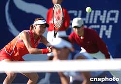 北京時間9月21日,中國網(wǎng)球公開賽的WTA賽事的女雙比賽繼續(xù)進(jìn)行,結(jié)果在一場引人注目的女雙比賽中,三號種子俄羅斯選手莎拉波娃和茲沃娜列娃組合爆大冷,以6-1,3-6和4-6輸給了非種子選手日本選手藤原理香和淺越喜羅布組合,首輪就慘遭淘汰。中新社記者:武仲林